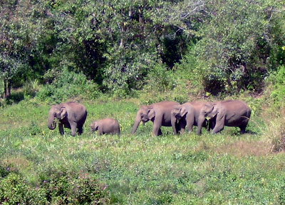 അതിനു ശേഷം അടുത്തും അകന്നും എത്ര ആനക്കാഴ്ചകള്. ഒരിക്കല് പകല് സമയത്ത് ഒരുമിച്ച് മൂന്നു വാഹനങ്ങളുടെ മുന്പില് പെട്ട ഒരാനയുടെ വെപ്രാളം , കക്ഷി റോഡില് അങ്ങോട്ടും ഇങ്ങോട്ടും ഓടി രക്ഷയില്ലാതെ അവസാനം ഒട്ടകപ്പക്ഷിയെപ്പോലെ പൊന്തക്കുള്ളില് തലയൊളിപ്പിച്ച് നിന്നു കളഞ്ഞു. ഈ വഴിയിലുള്ള ഡ്രൈവര്മാരും ആനകളോട് ബഹുമാനത്തോടെയാണ് പെരുമാറാറ്.